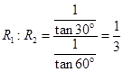 5、选择题 如图所示,图线1表示的导体电阻为R1,图线2表示的导体的电阻为R2,则下列说法正确的是( ? )