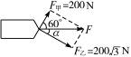 4、简答题 两人在河两岸用绳子拉小船使其在河流中行驶,甲的拉力是200 N,方向与航向间的夹角为60°,乙的拉力是200