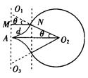 方向的垂线和弦ab的垂直平分线的交点上,入射速度方向与该中垂线的交点为d,可以证明:出射速度方向的反向延长线也过d点,O、d、O’都在弦ab的垂直平分线上。