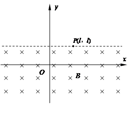 5、计算题 如图所示,在xOy平面内有一范围足够大的匀强电场,电场强度大小为E,电场方向在图中未画出.在y≤l的区域内有磁感应强度为B的匀强磁场,磁场方向垂直于xOy平面向里.一电荷量为+q、质量为m的粒子,从O点由静止释放,运动到磁场边界P点时的速度刚好为零,P点坐标为(l,l),不计粒子所受重力.