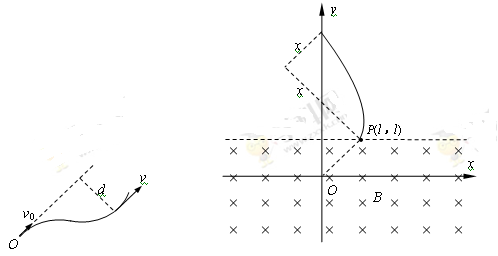 (2)磁场中运动到离直线OP最远位置时,速度方向平行于OP.洛伦兹力方向垂直于OP,设此位置粒子速度为v、离OP直线的距离为d,则?