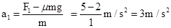 当水平力大小为F=1N时物体的加速度为