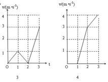 D、在第1s内物体静止不动,第2s内以a1的加速度做匀加速运动,第3s内以加速度a2做匀加速运动,速度如图4所示.