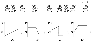 5、选择题 如图所示,一同学沿一直线行走,现用频闪照相记录了他行走中9个位置的图片,观察图片,能比较正确反映该同学运动的速度—时间图象的是下图中的? ( )?
