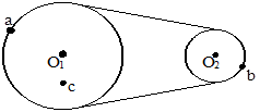 3、选择题 如图所示为一皮带传送装置,a、b分别是两轮边缘上的两点, c处在O1轮上,且有ra=2rb=2rc,则下列关系正确的有(?)