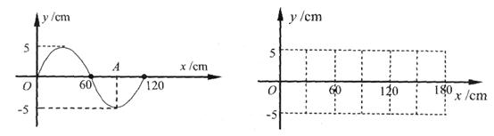 2、计算题 (12分)一列沿x轴正方向传播的简谐横波,在t1=0时刻的波形图如左图所示。已知:在t2=0.6s的时刻,A点刚好第三次出现波峰。
