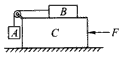 3、选择题 如图所示,长方体物块C置于水平地面上,物块A、B用不可伸长的轻质细绳通过滑轮连接(不计滑轮与 绳之间的摩擦),A物块与C物块光滑接触,整个系统中的A、B、C三物块在水平恒定推力F作用下从静止开始以相同的加速度一起向左运动。下列说法正确的是