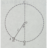 2、计算题 (12分)不可伸长的轻绳长l=1.2m,一端固定在O点,另一端系一质量为m=2kg的小球。开始时,将小球拉至绳与竖直方向夹角θ=37°的A处,无初速释放,如图所示,取sin37°=0.6,cos37°=0.8,g=10m/s2.