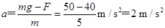 a3=F3-mgm=500-100×10100m/s2=-5.0m/s2