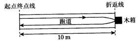 4、计算题 “10米折返跑”的成绩反映了人体的灵敏素质,如图所示。测定时,在平直跑道上,受试者以站立式起跑姿势站在起点终点线前,当听到“跑”的口令后,全力跑向正前方10米处的折返线,测试员同时开始计时,受试者到达折返线处时,用手触摸折返线处的物体(如木箱),再转身跑向起点终点线,当胸部到达起点终点线的垂直面时,测试员停表,所用时间即为“10米折返跑”的成绩。设受试者起跑的加速度为4 m/s2,运动过程中的最大速度为4 m/s,快到达折返线处时需减速到零,减速的加速度为8 m/s2,返回时达到最大速度后不需减速,保持最大速度冲线。求该受试者“10米折返跑”的成绩为多少秒?