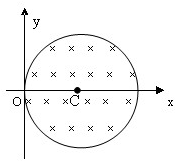 4、简答题 如图所示,半径为r=10cm的圆形匀强磁场区域边界跟y轴相切于坐标原点O,磁感应强度为B=0.332T,方向垂直纸面向里.在O处有一放射源,可沿纸面向各个方向射出速率为v=3.2×106m/s的带正电粒子,已知该粒子的质量m=6.64×10-27kg,电量为q=3.2×10-19C.不计重力.