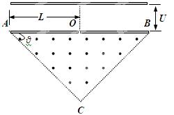 3、计算题 如图所示,在一底边长为2L,θ=45°的等腰三角形区域内(O为底边中点)有垂直纸面向外的匀强磁场. 现有一质量为m,电量为q的带正电粒子从静止开始经过电势差为U的电场加速后,从O点垂直于AB进入磁场,不计重力与空气阻力的影响。
