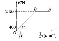 5、计算题  在检测某款电动车性能的实验中,质量为8×102 kg的电动车由静止开始沿平直公路行驶,达到的最大速度为15 m/s,利用传感器测得此过程中不同时刻电动车的牵引力F与对应的速度v,并描绘出F-图象(图中AB、BO均为直线),假设电动车图行驶中所受的阻力恒定,求此过程中: