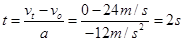 由此可以看出物体再做匀减速直线运动,所以速度为零的时间: