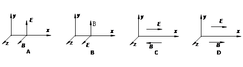 3、选择题  在如下匀强电场和匀强磁场共存的区域内,带正电的粒子(不计重力)不可能沿x轴正方向做直线运动的是(?)