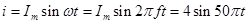 A 0.04s 25Hz i="4" sin50πt