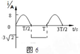 1、选择题 某电阻元件在正常工作时,通过它的电流按如图6所示的变化规律。今与这个电阻元件串联一个电流表,则电流表的数为: