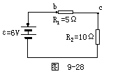 2、选择题 如图9-28所示电路的三根导线中有一根是断的。电源电阻器R1·R2及另外两根导线都是好的。为了查出断导线,某学生想先用万用表的红表笔连接在电源的正极a,再将黑表笔分别连接在电阻器Rl的b端和R2的c端,并观察万用表指针的示数。在下列选挡中,符合操作规程的是: