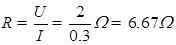 这两条曲线的交点为U=2V、I=0.3A,同时满足了电路结构和元件的要求,此时通过电流表的电流值IA=2I=0.6A. 每只灯泡的电阻为