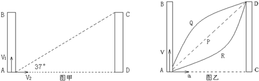 1、简答题 如图甲所示,竖直直放置的两端封闭的玻璃管中注满清水,内有一个红蜡块能在水中以0.3m/s的速度匀速上浮.现当红蜡块从玻璃管的下端匀速上浮的同时,使玻璃管水平匀速向右运动,测得红蜡块实际运动的方向与水平方向的夹角为37°,则:(已知sin37°=0.6;cos37°=0.8)