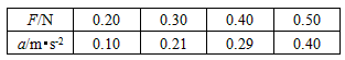 3、实验题 某学生用如图所示实验装置做“验证牛顿第二定律”实验中,保持小车质量不变,测得小车的加速度a和拉力F的数据如表所示。
