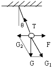 2、计算题 如图所示,一根细线上端固定,下端拴着一个重量为G的小球,静止时细线保持竖直。现给小球一个水平向右的拉力F,把小球拉到某个位置静止。若当细线与竖直方向的夹角为θ时,水平拉力的大小为F,细线对小球的拉力为T。求F与T。