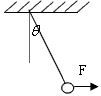 2、计算题 如图所示,一根细线上端固定,下端拴着一个重量为G的小球,静止时细线保持竖直。现给小球一个水平向右的拉力F,把小球拉到某个位置静止。若当细线与竖直方向的夹角为θ时,水平拉力的大小为F,细线对小球的拉力为T。求F与T。
