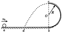 5、选择题 水平光滑直轨道ab与半径为R的竖直半圆形光滑轨道bc相切,一小球以初速度v0沿直线轨道向右运动,如图所示,小球进入圆形轨道后刚好能通过c点,然后小球做平抛运动落在直轨道上的d点,则