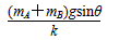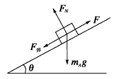 1、计算题 如图所示,在倾角为θ的光滑斜面上有两个与轻质弹簧相连接的物块A、B,它们的质量分别为mA、mB ,弹簧的劲度系数为k,C为一固定挡板。系统处于静止状态。现开始用一恒力F沿斜面方向拉物块A使之向上运动,求物块B刚要离开C时物块A受到的合外力和从开始到此时物块A的位移d。(重力加速度为g)