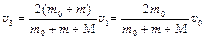 5、简答题 如图所示质量为M的天车静止在光滑水平轨道上,下面用长为L的细线悬挂着质量为m的沙箱,一颗质量为m0的子弹以v0的水平速度射入沙箱,并留在其中,在以后运动过程中