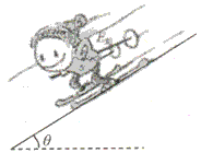 4、计算题 如图所示,滑雪运动员质量,沿倾角