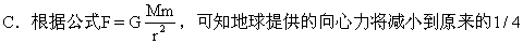 5、选择题 假如一做圆周运动的人造地球卫星的轨道半径增大到原来的2倍,仍做圆周运动,则[ ]