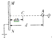 5、选择题  如图一带电荷量的点电荷A,与一块很大的接地金属板MN组成一系统,A到板垂直距离为dA到板中垂线上离板C处场强大小(?)