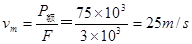 (2)如果卡车发动机的额定功率是75kW,它以最大速度匀速行驶时的阻力是3×103 N,求这辆卡车的最大速度。