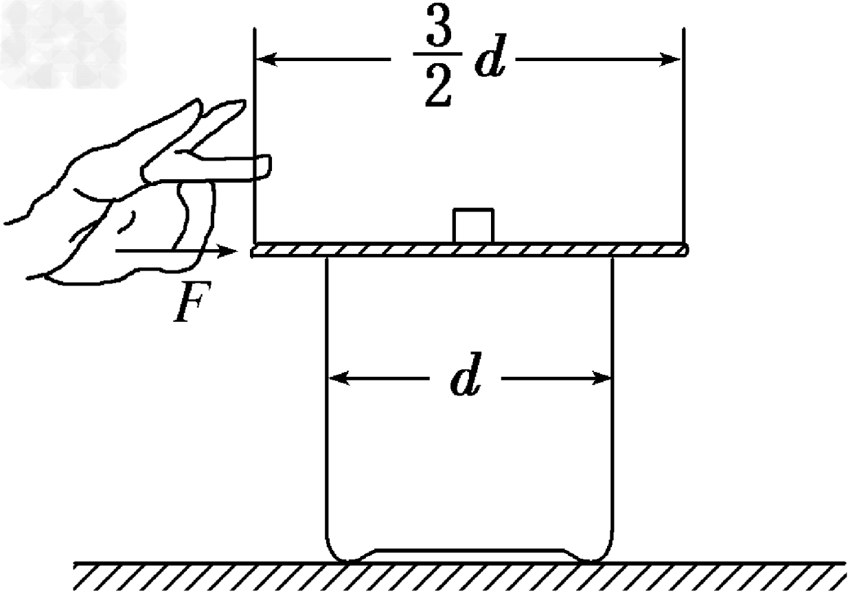 d、质量为m的匀质薄圆板,板上放一质量为2m的小物块。板中心、物块均在杯的轴线上。物块与板间动摩擦因数为μ,不计板与杯口之间的摩擦力,重力加速度为g,不考虑板翻转。