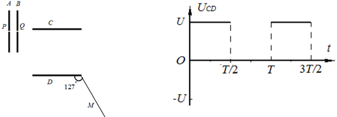 . 现从P点处连续不断地有质量为 m、带电量为+q的粒子放出(粒子的初速度可忽略不计),经加速后从Q点射出,贴着C板并平行C板射入,经周期T粒子恰好通过C、D间电场(粒子间相互作用力忽略不计,重力不计,