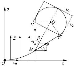 (2)粒子运动到M点时速度为v,与x方向的夹角为