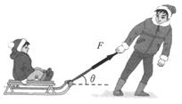 1、计算题 如图所示小孩和雪橇的总质量m=10kg,大人用与水平方向成θ=53°角斜向上F=80N的拉力拉雪橇,使雪橇从静止开始沿水平地面做匀加速直线运动.4s末撤去拉力,然后做匀减速直线运动直到停止。已知雪橇与水平地面的动摩擦因数=0.5.(sin53°=0.8? cos53°="0.6" 取g=10m/s2)求:
