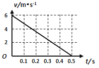 5、计算题 (14分)一质量m=0.5kg的滑块以一定的初速度冲上一倾角为30?足够长的斜面,某同学利用DIS实验系统测出了滑块冲上斜面过程中多个时刻的瞬时速度,如图为通过计算机绘制出的滑块上滑过程中的v-t图。最大静摩擦力可视为等于滑动摩擦力,g取10m/s2,求: