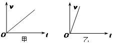 5、选择题 如图甲乙所示是表示两个物体P与Q的速度—时间图象, 则(?)