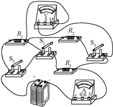 4、简答题 如图所示,电源两端电压不变,当只闭合开关S1时,电流表的示数为I1,电压表的示数为U1,电阻R2的电功率为ρ1,当开关S1、S2、S3都闭合时,电流表的示数为I2,电压表的示数为U;当只闭合开关S1时,电阻R1的电功率为0.64W,已知: