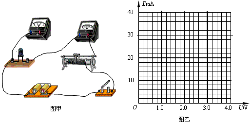 1、填空题 用如图(甲)所示的电路图研究小灯泡L(2.4V,1.0W)的伏安特性,并测出该灯泡在额定电压下正常工作时的电阻值.