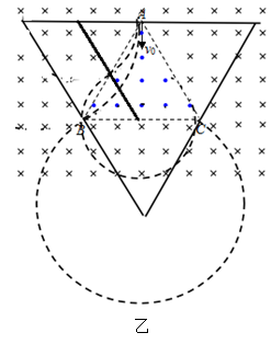 若从A射出的粒子带正电,,向左偏转,其轨迹半径等于L,第一次到达B点所用时间为,进入理想边界向右偏转,再经后第一次到达C点,所用总时间为t3=T;若从A射出的粒子带正电,,向左偏转,其轨迹半径等于,经后进入理想边界外向右偏转,再经后第一次到达B点所用时间为,再经T后第一次到达C点,所用总时间为t4=,如图乙: