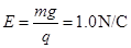 重力mg=2.0×10-6N,电场力F电=Eq=2×10-6N