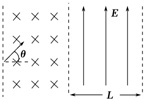 2、简答题 如图,某一初速度为v0的带电粒子进入一垂直于纸面向里、磁感应强度大小为B的有界匀强磁场,粒子垂直进入磁场时的速度与水平方向成θ=45°角,接着垂直进入一水平宽度为L、方向竖直向上的匀强电场(E大小未知),粒子穿出电场时速度大小变为原来的