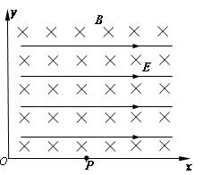 1、计算题 (20分)如图在xOy坐标系第Ⅰ象限,磁场方向垂直xOy平面向里,磁感应强度大小均为B="1.0T" ;电场方向水平向右,电场强度大小均为E=