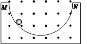 4、计算题 (10分)(创编)如图所示,质量为m、电量为-q的小球,可在半径为R的固定半圆形光滑的绝缘轨道两端点M,N之间来回滚动,磁场磁感强度B垂直于轨道平面,小球在M、N处速度为零。若小球在最低点的最小压力为零,那么磁感强度B为多大?小球对轨道最低点的最大压力为多大?