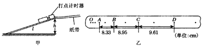 2、实验题 如图甲所示,打点计时器固定在斜面的某处,让一滑块拖着穿过打点计时器的纸带从斜面上滑下,图乙是某同学实验时打出的某条纸带的一段。