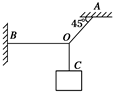 5、计算题 如图所示,能承受最大拉力为10 N的细线OA与竖直方向成45°角,能承受最大拉力为5 N的细线OB水平,细线OC能承受足够的拉力,为使OA、OB均不被拉断,OC下端所悬挂物体的最大重力是多少?