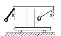 1、选择题 如图所示,小车上有一个固定的水平横杆,左边有一与横杆固定的轻杆,与竖直方向成θ角,下端连接一小铁球.横杆右边用一根细线吊另外一小铁球,当小车做匀变速运动时,细线保持与竖直方向成α角.若θ<α则下列哪一项说法正确的是(?)
